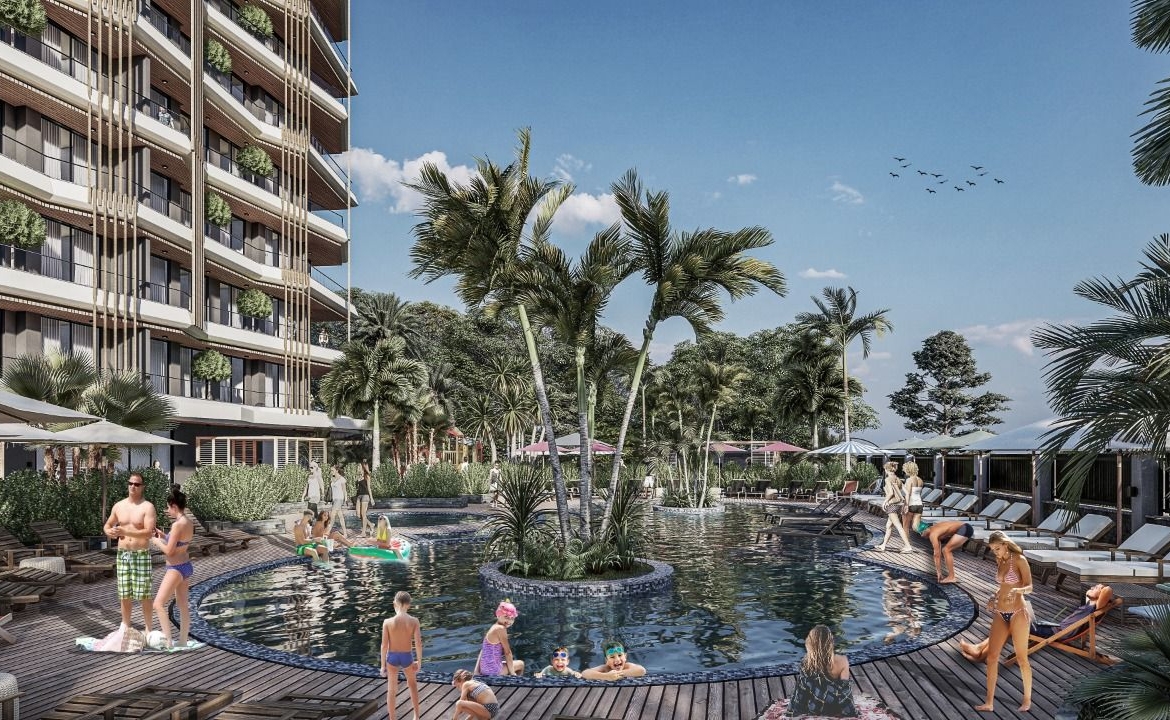 Lägenheter lämpliga för att få uppehållstillstånd med delbetalning i ett ekologiskt rent grönområde Demirtas.