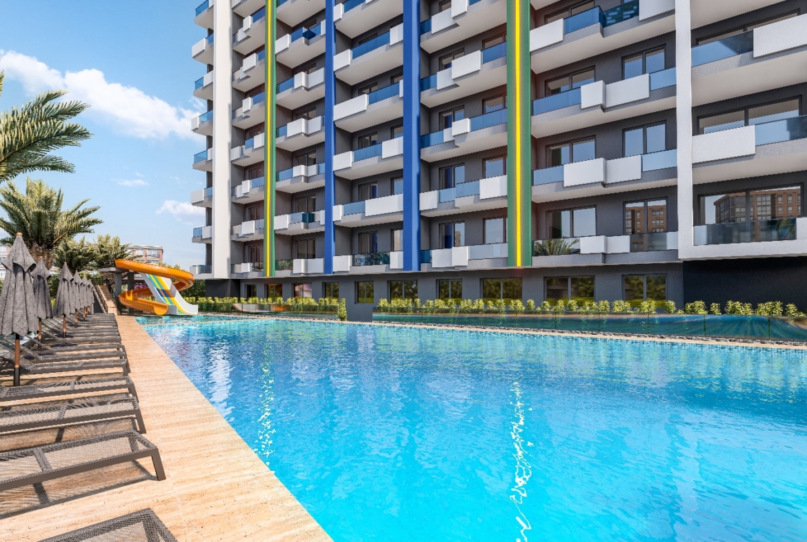 Vi presenterar för er uppmärksamhet ett nytt bostadskomplexprojekt i Soli, Mezitli. Bostadskomplexet kommer att bestå av 1 kvarter, på territoriet kommer det att finnas en pool, en lekplats, ett lusthus, en basketplan och parkering.